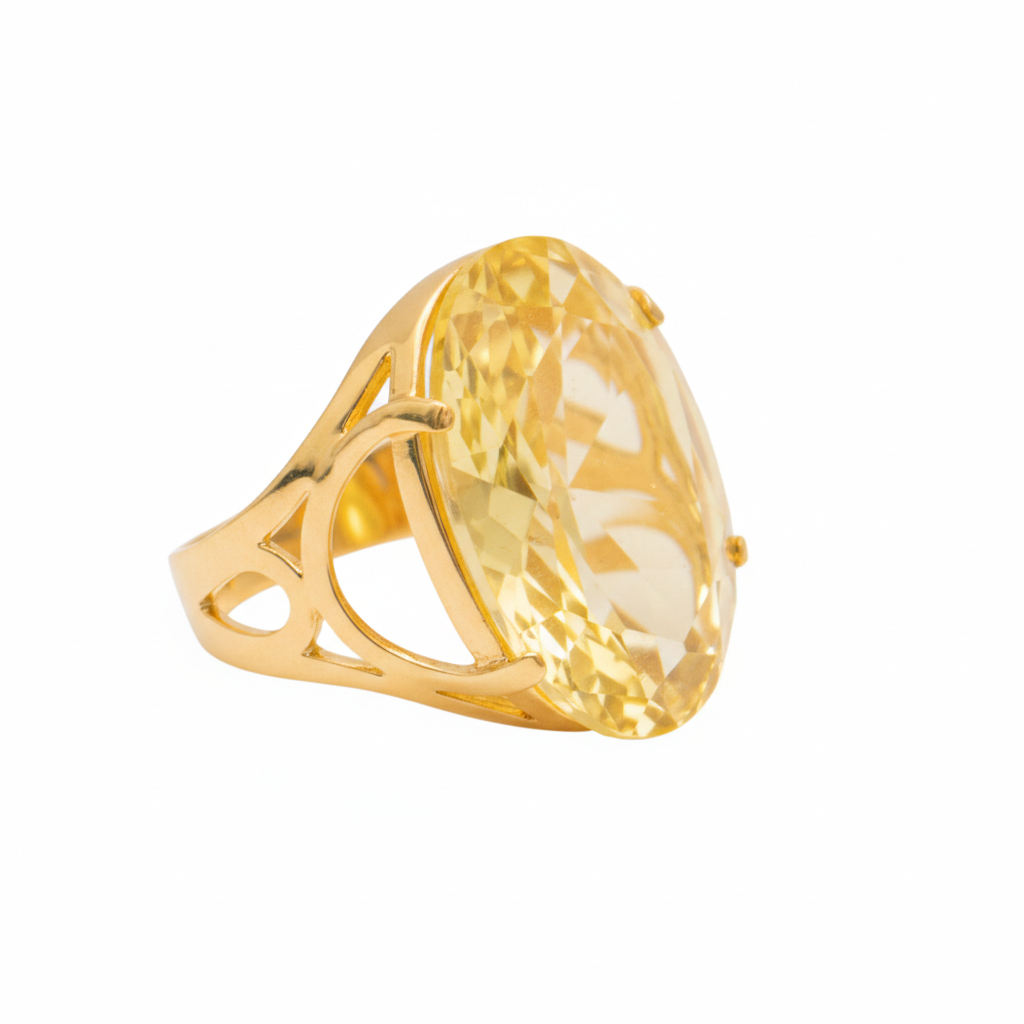 Anel Pedra Oval Grande Amarelo Topázio Banhado a Ouro 18k Luxo. Um anél para Presentear quem Amamos
