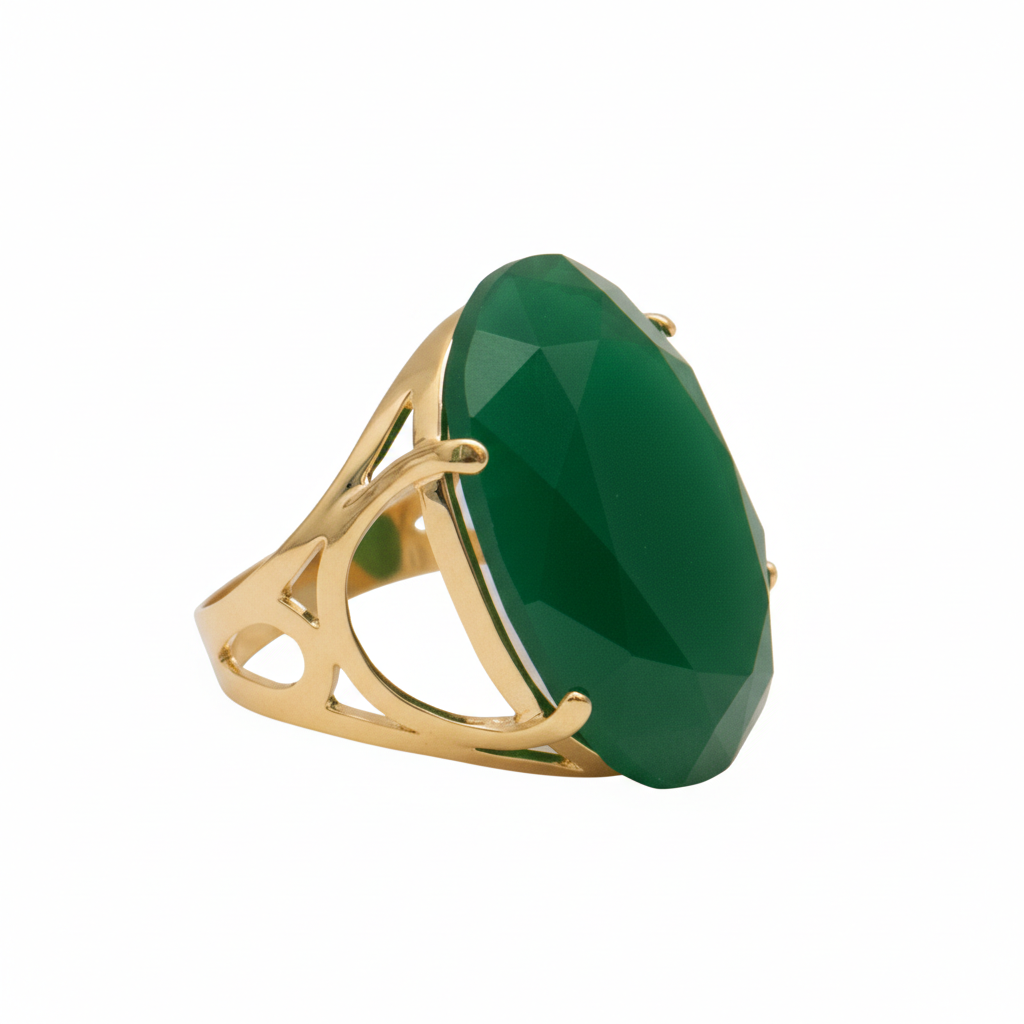 Anel Pedra Oval Grande Verde Banhado a Ouro 18k Luxo. Uma verdadeira Semijoia de Luxo