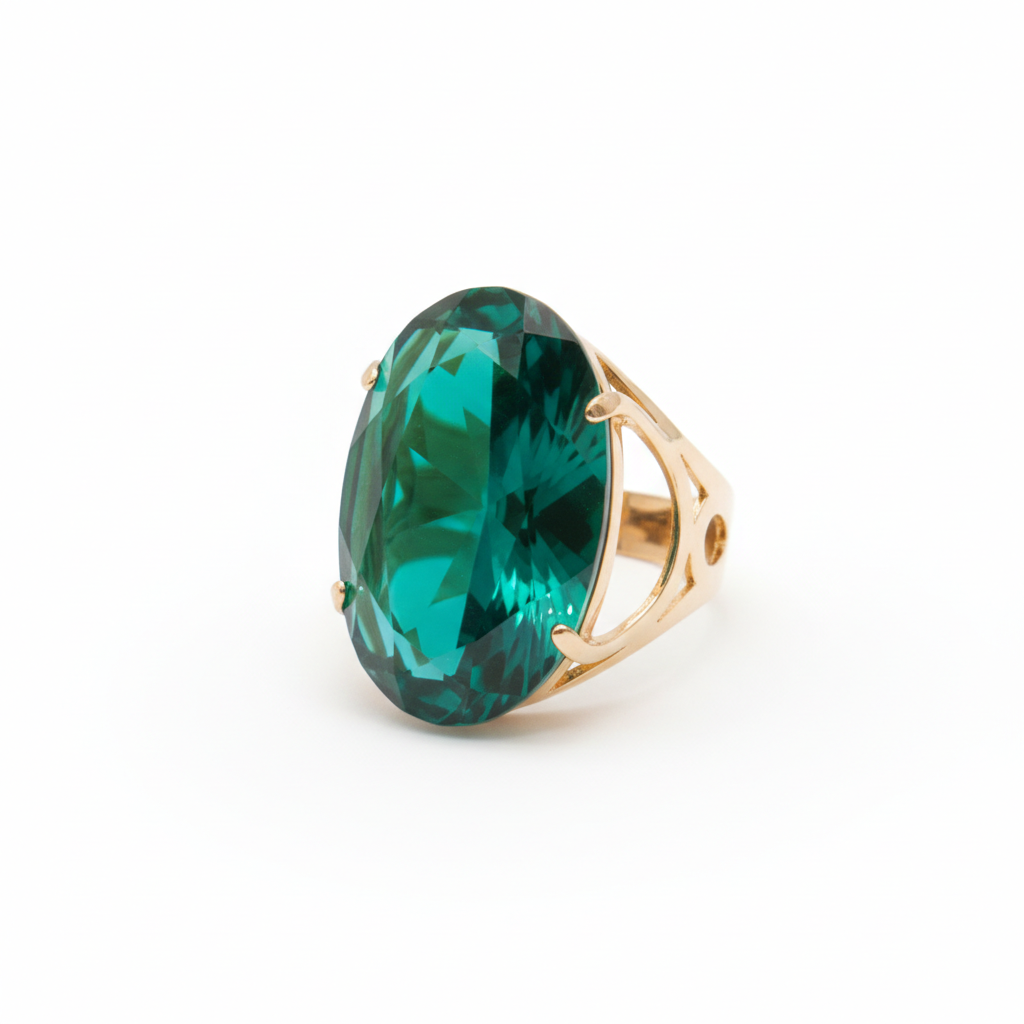 Anel Pedra Oval Grande Verde Turmalina Banhado a Ouro 18k. Uma verdadeira Jóia