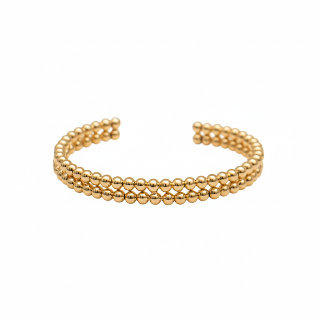 O Bracelete Feminino Esferas Banhado A Ouro é a escolha perfeita para quem busca sofisticação e modernidade em um único acessório. Com design estruturado em esferas e acabamento banhado a ouro, a peça entrega brilho elegante e visual contemporâneo, ideal para compor desde produções básicas até looks mais elaborados.
