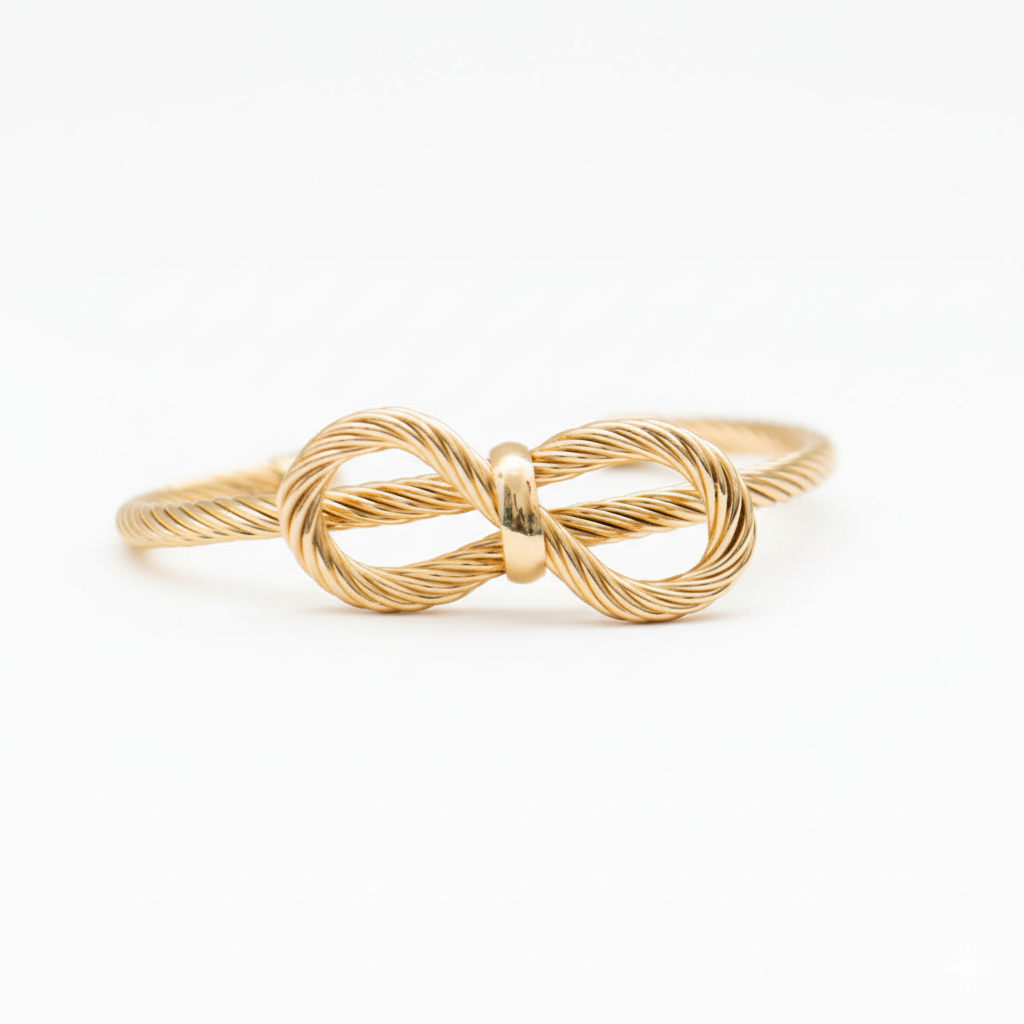 Bracelete Laço Feminino Minimalista Dourado Banhado Ouro