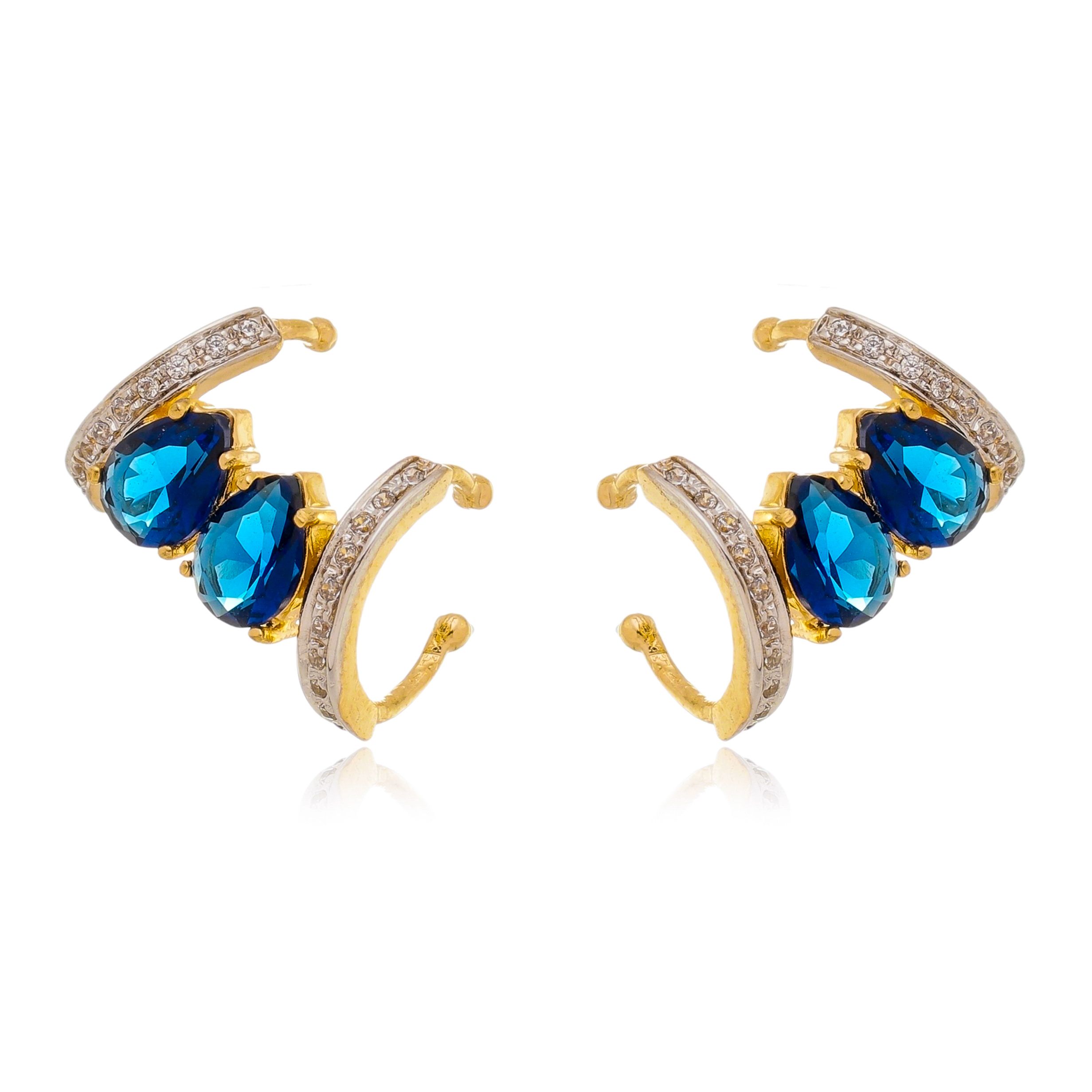 Brinco Piercing Fake Orelha Azul Safira Folheado Ouro Par. Uma verdadeira SemiJóia moderna e descolada.