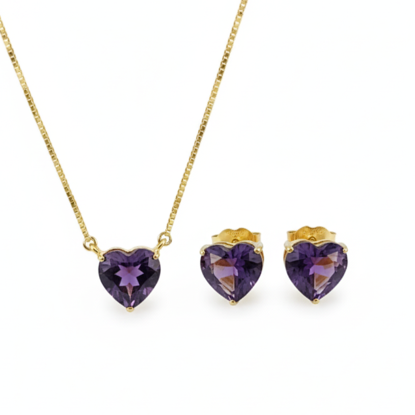 Colar E Brinco Coração Delicado Pedra banhado a Ouro