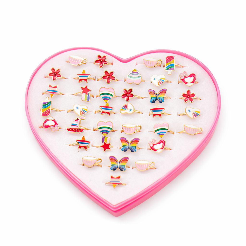 Encante suas clientes com este mix de anéis infantis super coloridos e delicados, ideal para revenda no atacado. O conjunto acompanha 36 unidades, com 9 modelos variados, perfeitos para o público infantil.