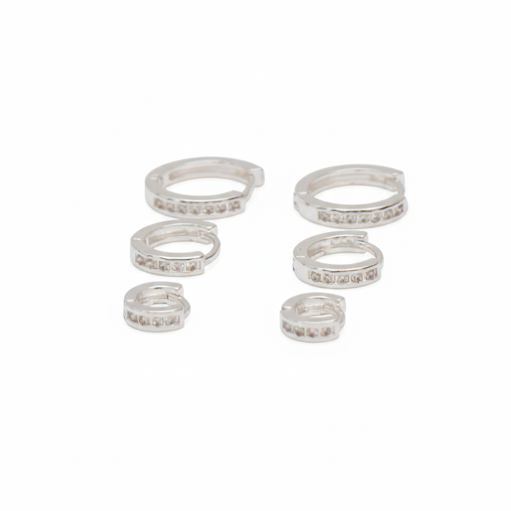 Este trio de argolas cravejadas com 1 fileira de zircônias é perfeito para quem ama brilho na medida certa. Cada par possui 5 mm de espessura e tamanhos diferentes para um visual harmônico: